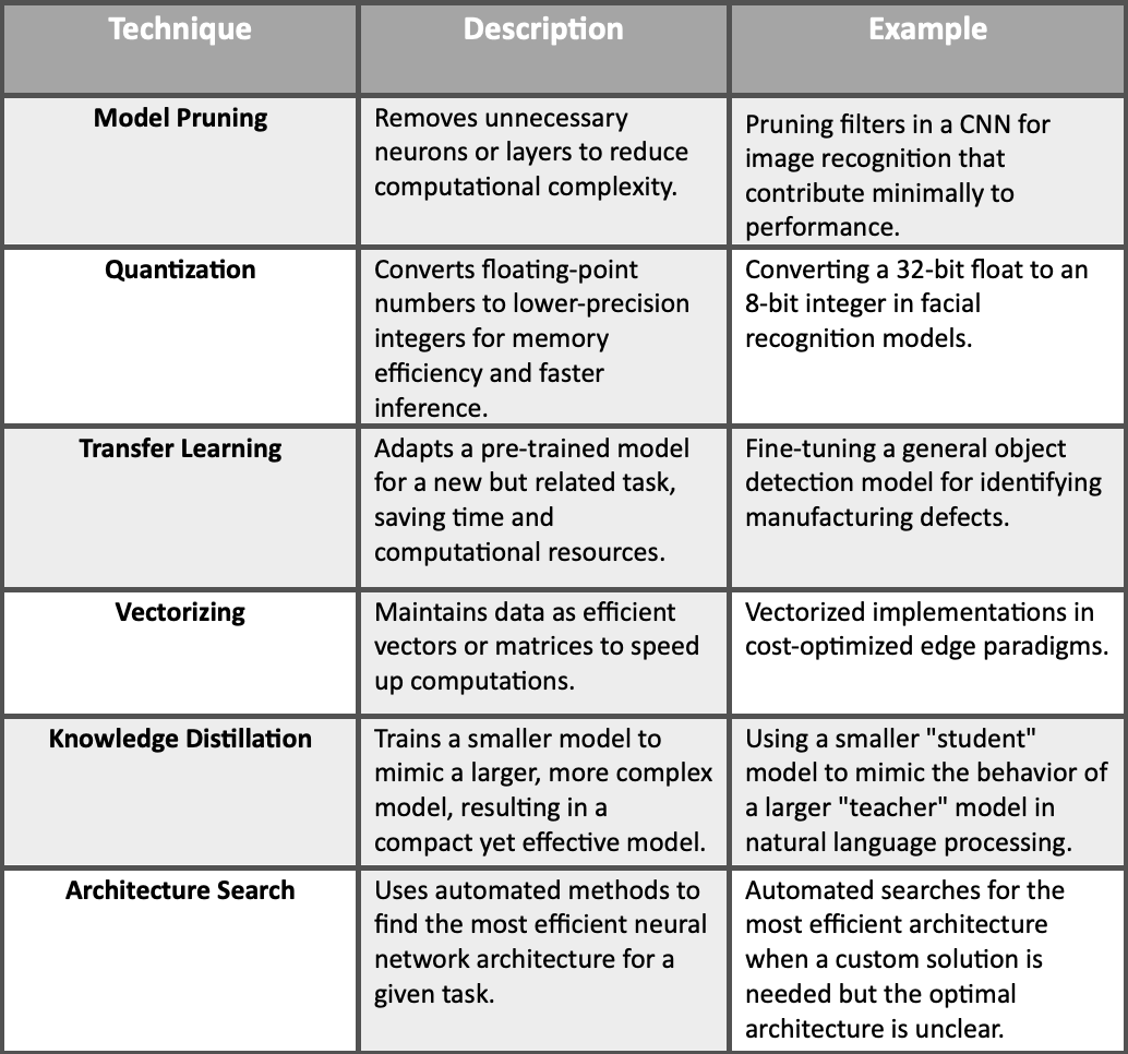 However, deploying AI-ML models at the edge is not without its challenges. Edge computing environments commonly operate under constraints such as limited computational power, energy availability, and storage capacity. These limitations necessitate the optimization of complex AI-ML models, originally designed for resource-abundant data centers, to function effectively in resource-constrained edge devices.